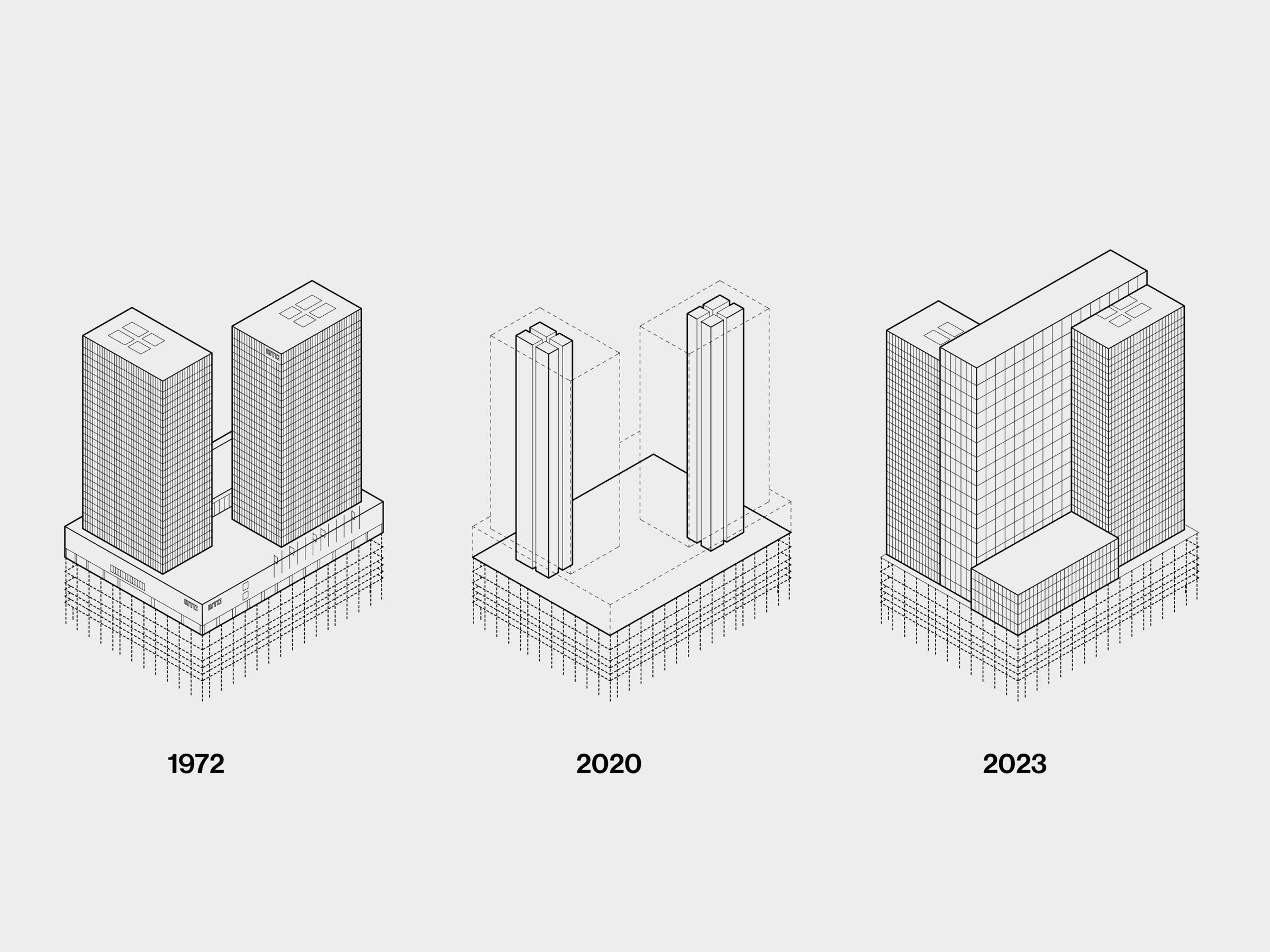 The architect explained what they were going to do: not demolish and rebuild from scratch, but treat the existing towers as a material bank.