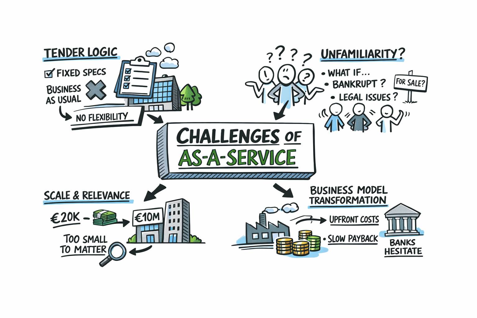 Together, these four barriers explain why many as-a-service ideas remain pilots instead of scaled solutions.