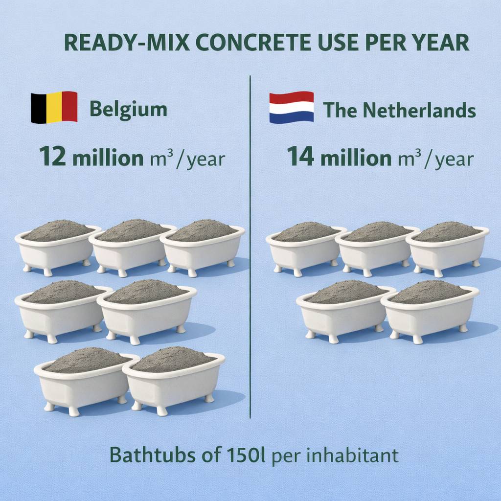 In Belgium alone, around 12 million cubic meters of ready-mix concrete are produced every year.